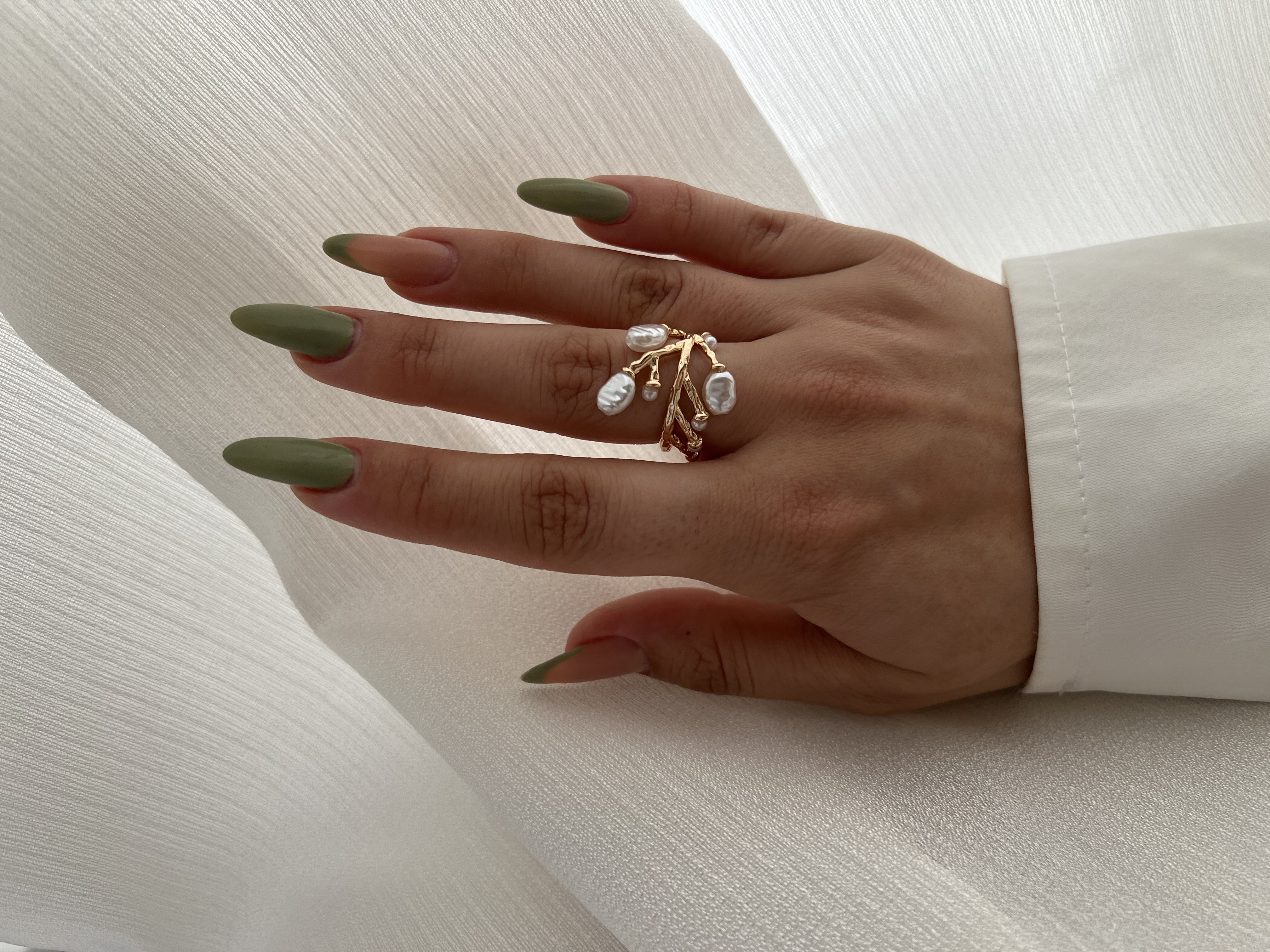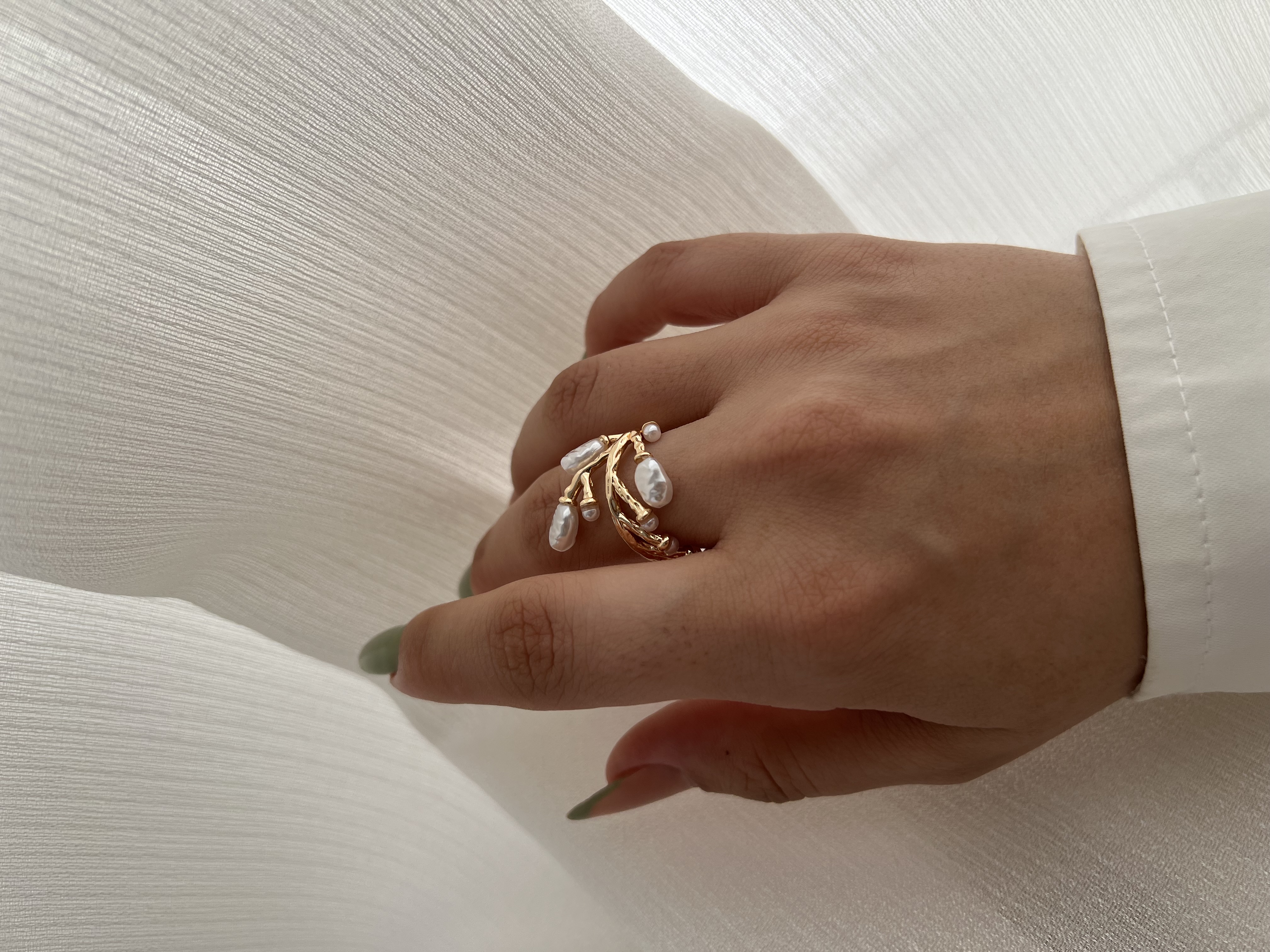 انگشتر مینیمال مدل شاخه مروارید باروک کد‌R1017