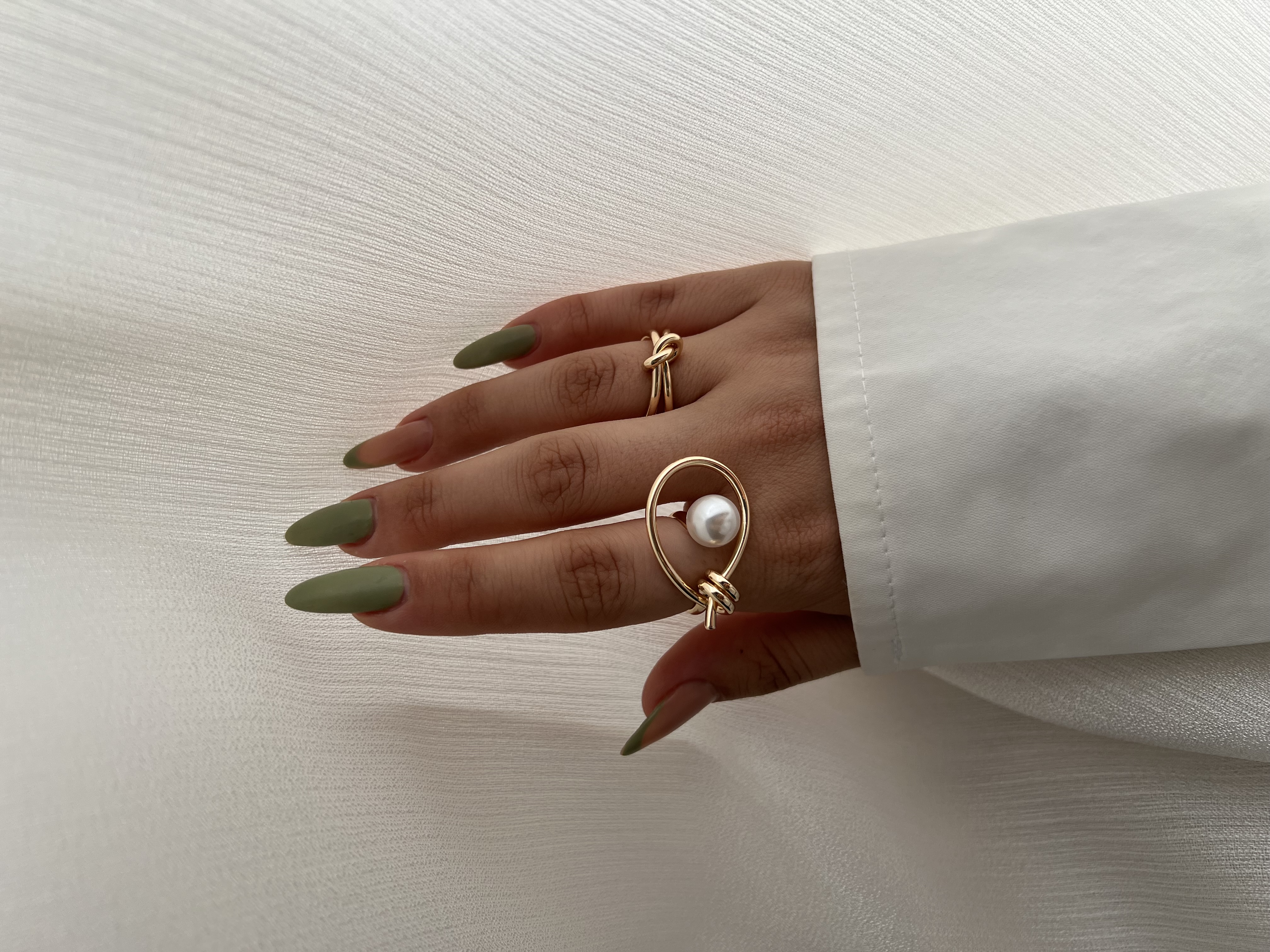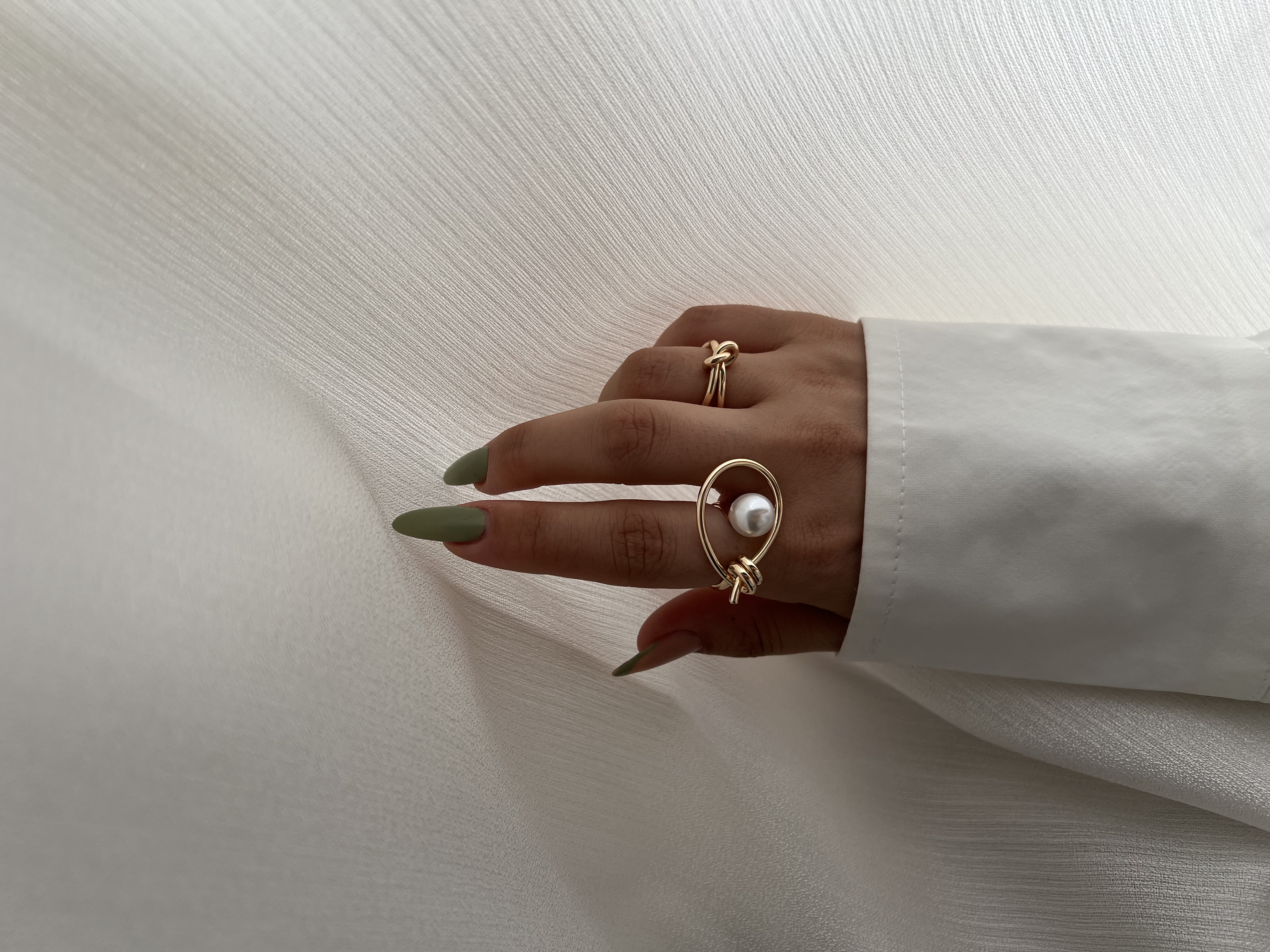 انگشتر مینیمال گره و ماهی مروارید کد R1032