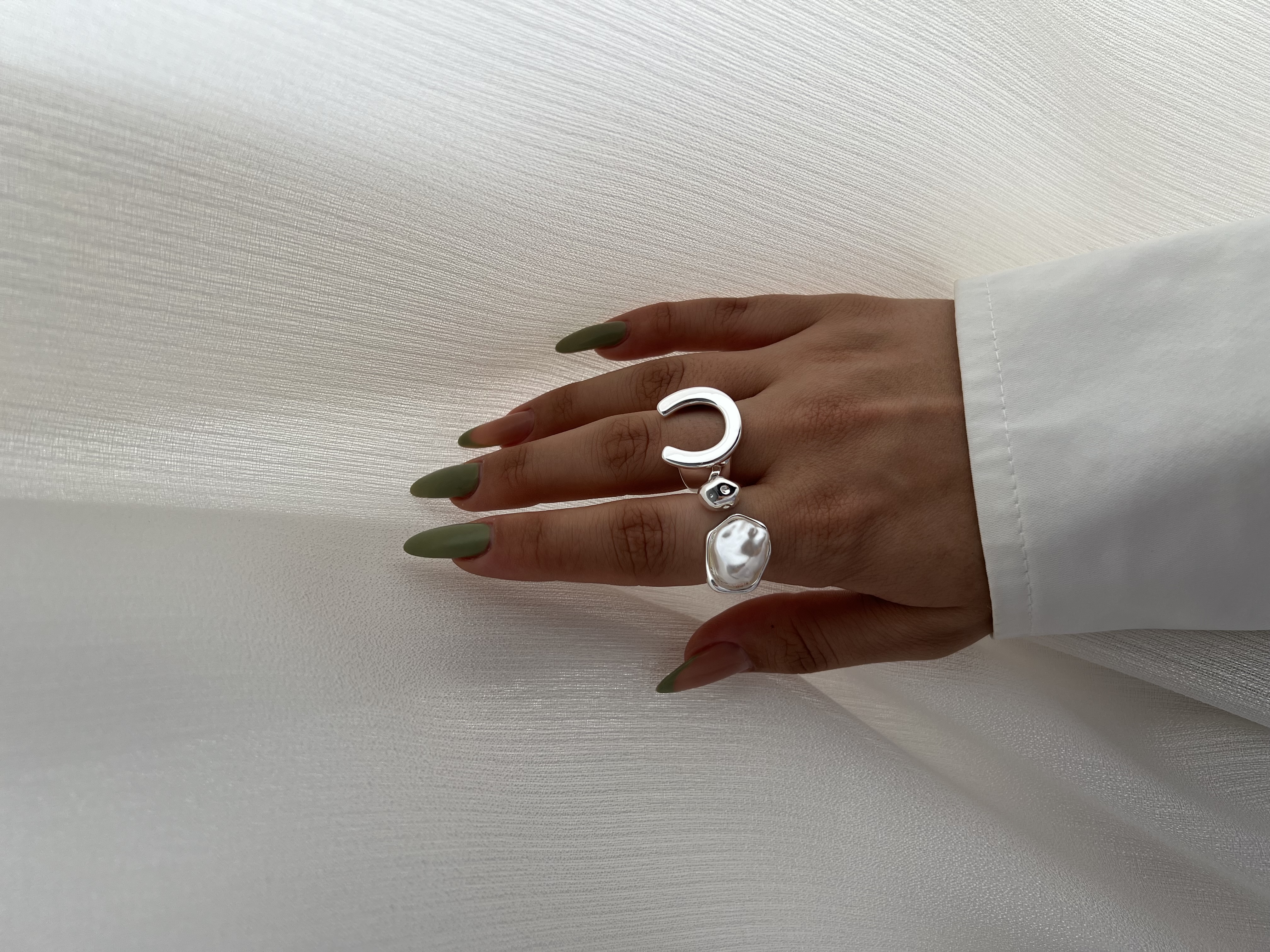 انگشتر مینیمال مروارید باروک و نعل کد R1038