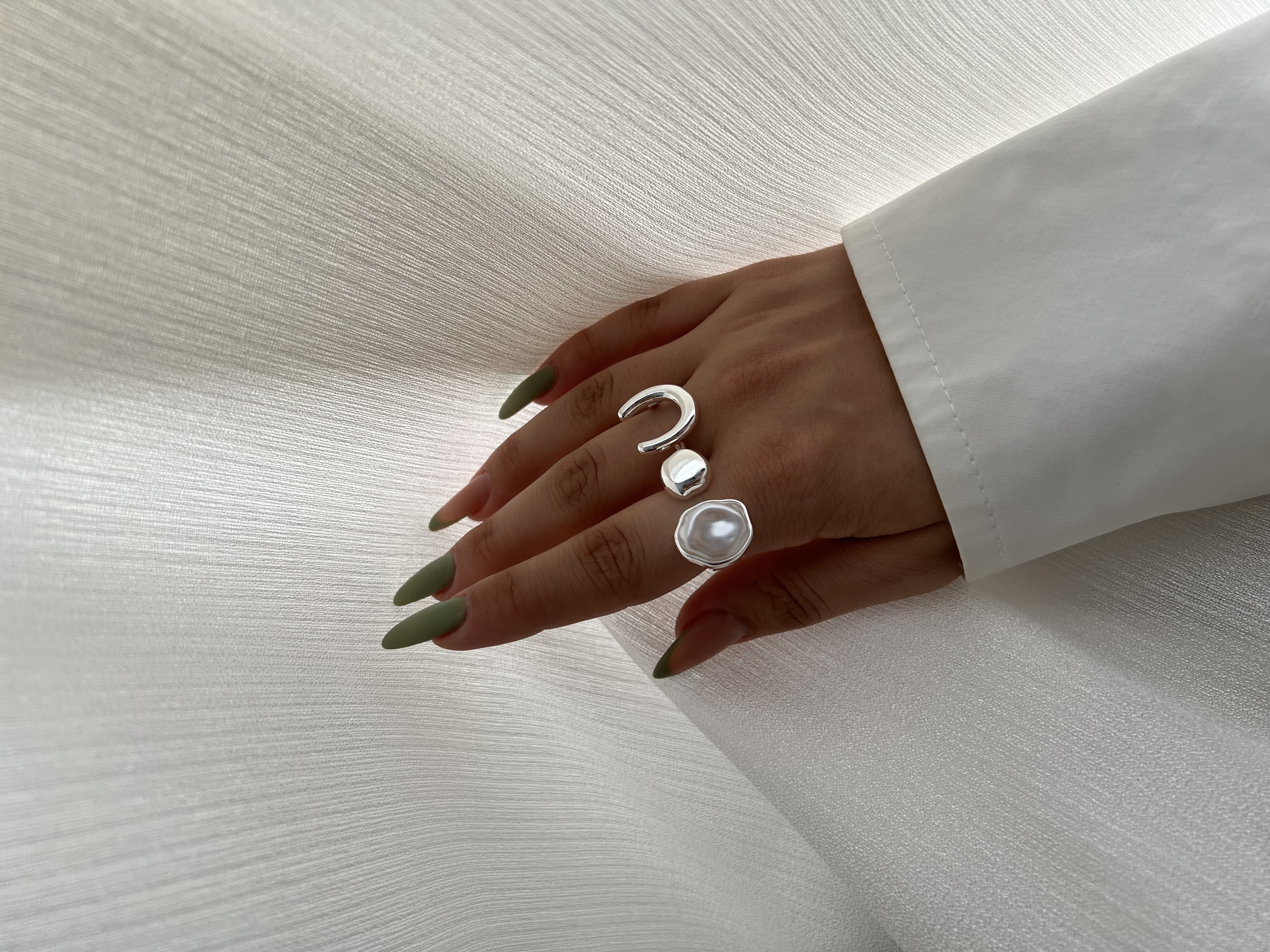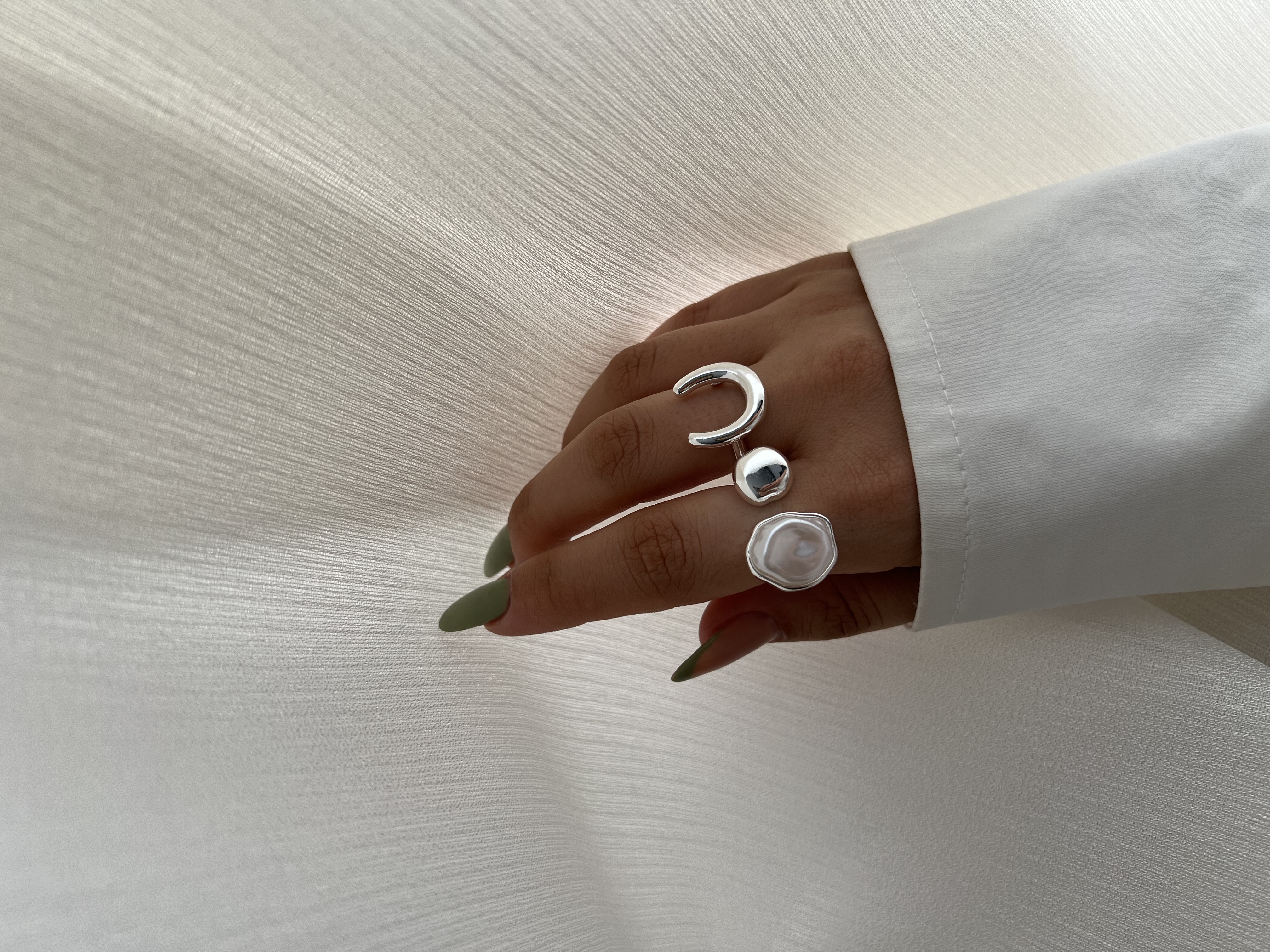 انگشتر مینیمال مروارید باروک و نعل کد R1043