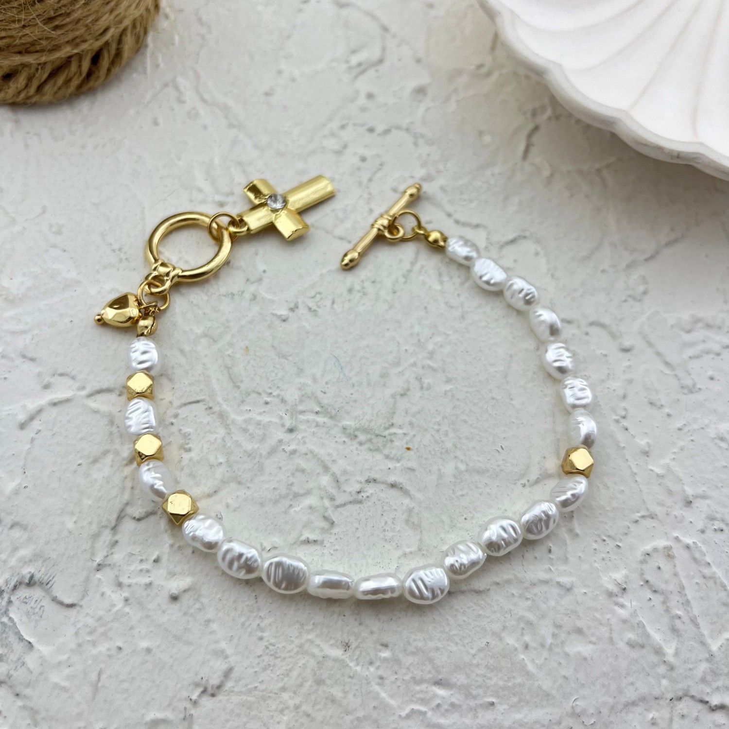 دستبند زنانه مدل مرواریدی و صلیب دار B5164
