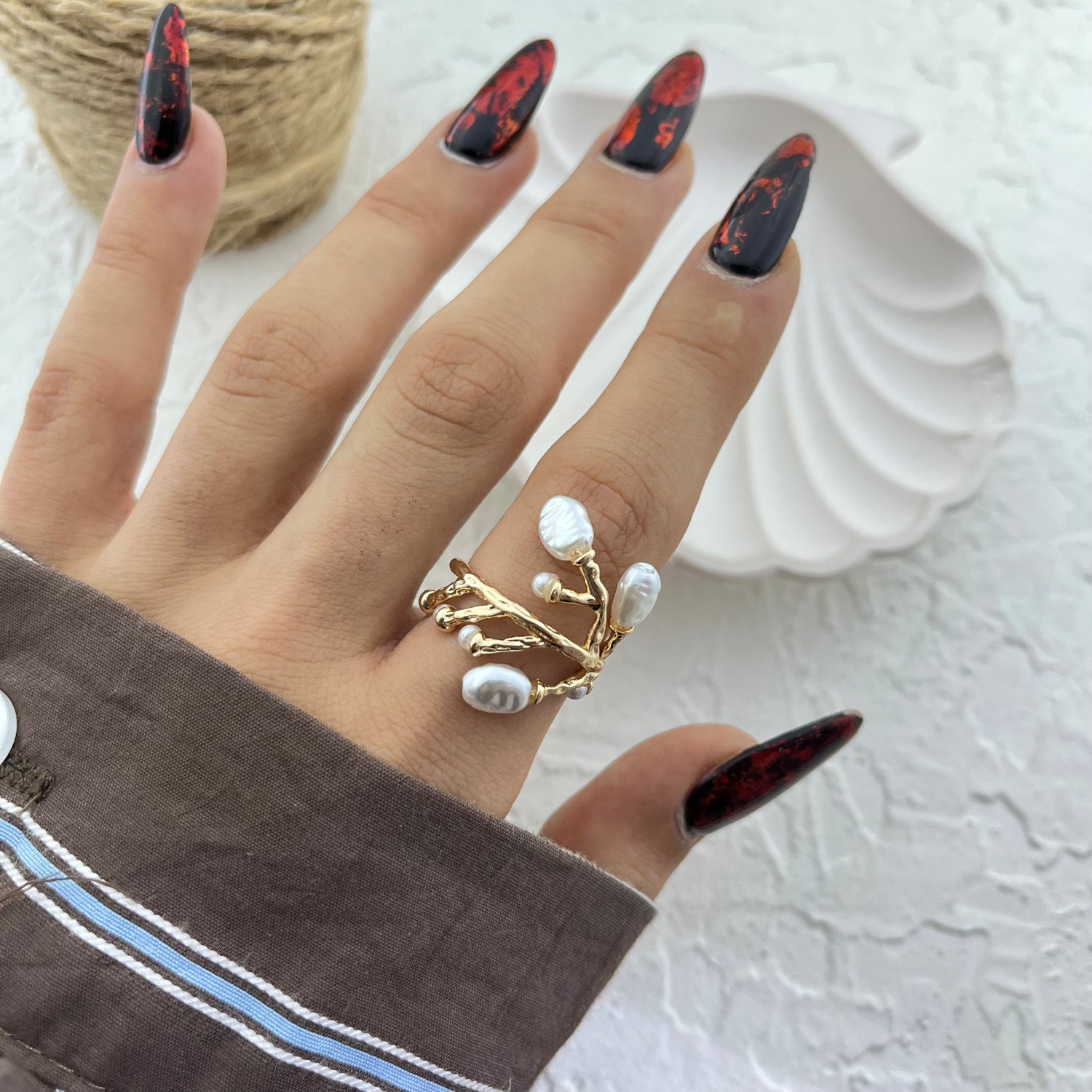 انگشتر زنانه مینیمال مدل برگ مروارید کد R5044