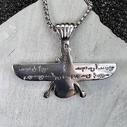 - دم پرنده: در قسمت پایین بدن انسان یک دم یا دامن سه قسمتی وجود دارد که نماد کردار بد، پندار بد و گفتار بد است. دلیل پایین قرار گرفتن آن به این معنی است که اندیشه، رفتار و گفتار بد همیشه باید در پایینترین مرتبه و به زیر افکنده شود.