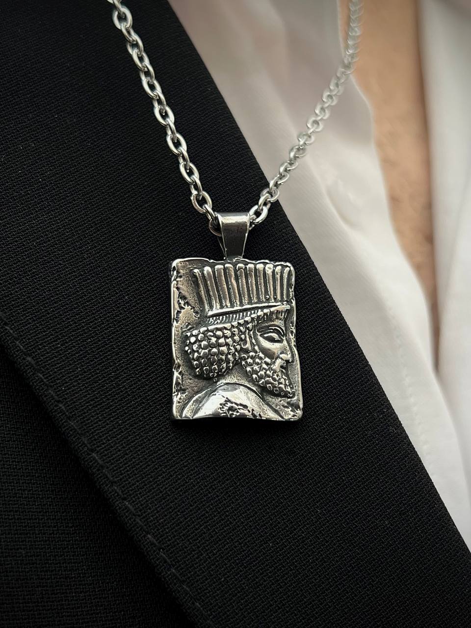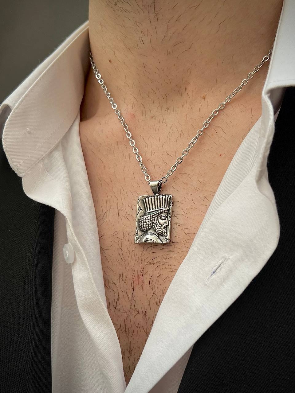گردنبند فرهٔ هخامنشاین گردنبند الهام‌گرفته از شکوه و عظمت شاهان هخامنشی است؛ نمادی از قدرت، خرد و جاودانگی ایران باستان.طرح برجسته‌ی چهره‌ی پادشاه، یادآور فره ایزدی‌ست؛ نیرویی آسمانی که در باور نیاکان ما، به پادشاهان و قهرمانان، شکوه و مشروعیت می‌بخشید.📜 با به گردن آویختن این اثر، گویی بخشی از اصالت، تاریخ و هویت ایرانی را همراه خود دارید؛ نشانه‌ای از شکوه جاویدان که از دل تخت‌جمشید و سنگ‌نگاره‌های باستانی به امروز رسیده است.مناسب برای کسانی که به دنبال زیورآلاتی خاص، اصیل و معناگرا هستند.