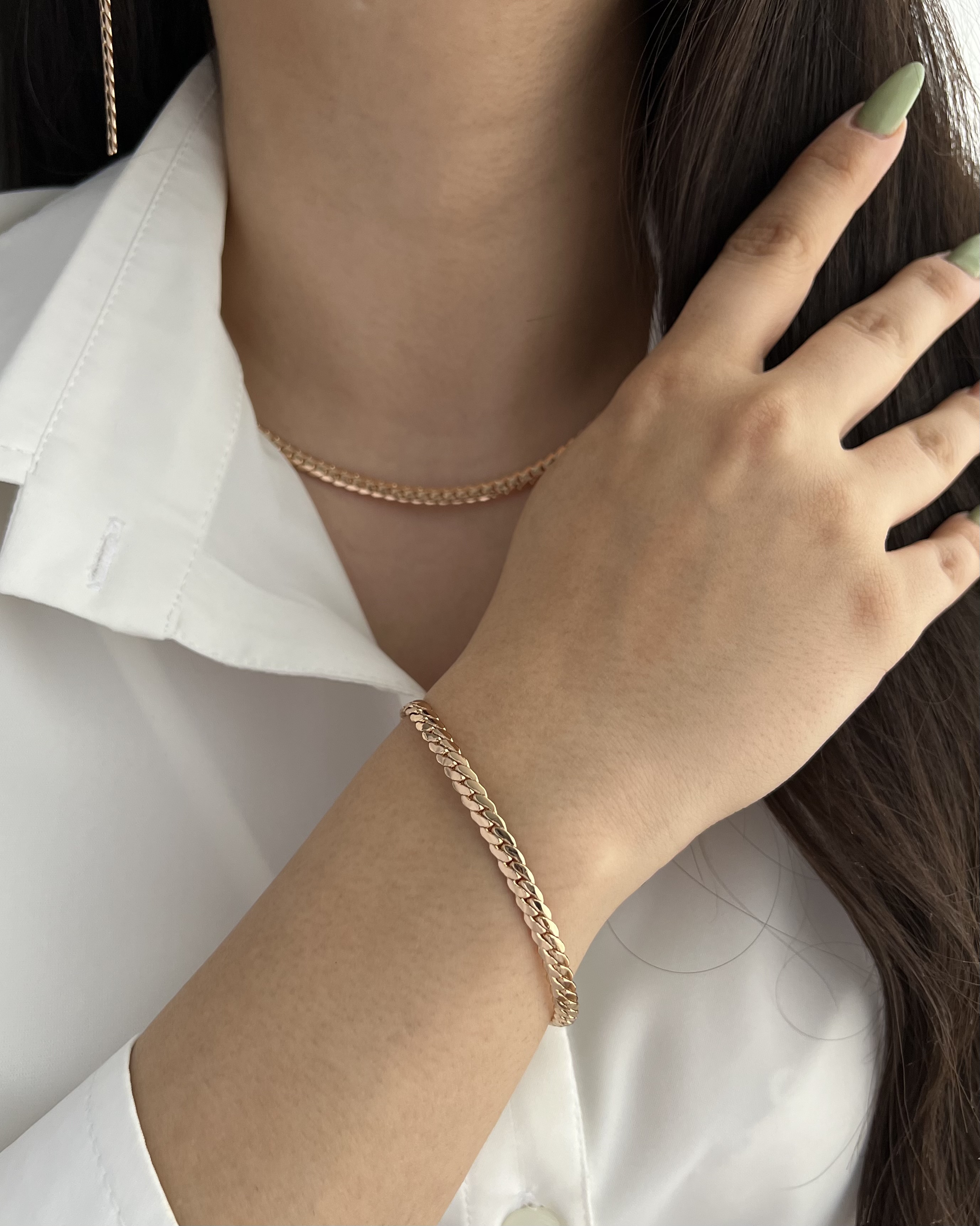 رنگ ثابت و ضدحسایت/طول گردنبند ۴۵/طول دستبند ۱۹/طول گوشواره ۶ سانتیمتر/ضخامت ۴ میل