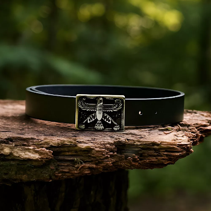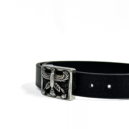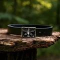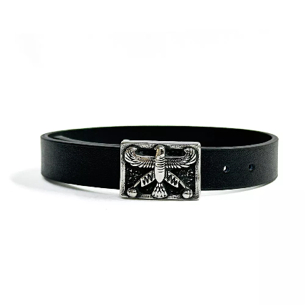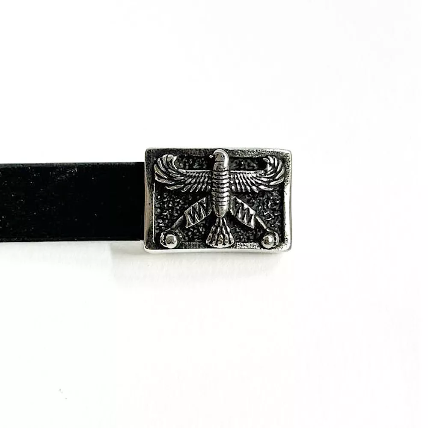 دستبند مردانه چرم طبیعی مشکی و استیل درفش شهباز کد Men0061