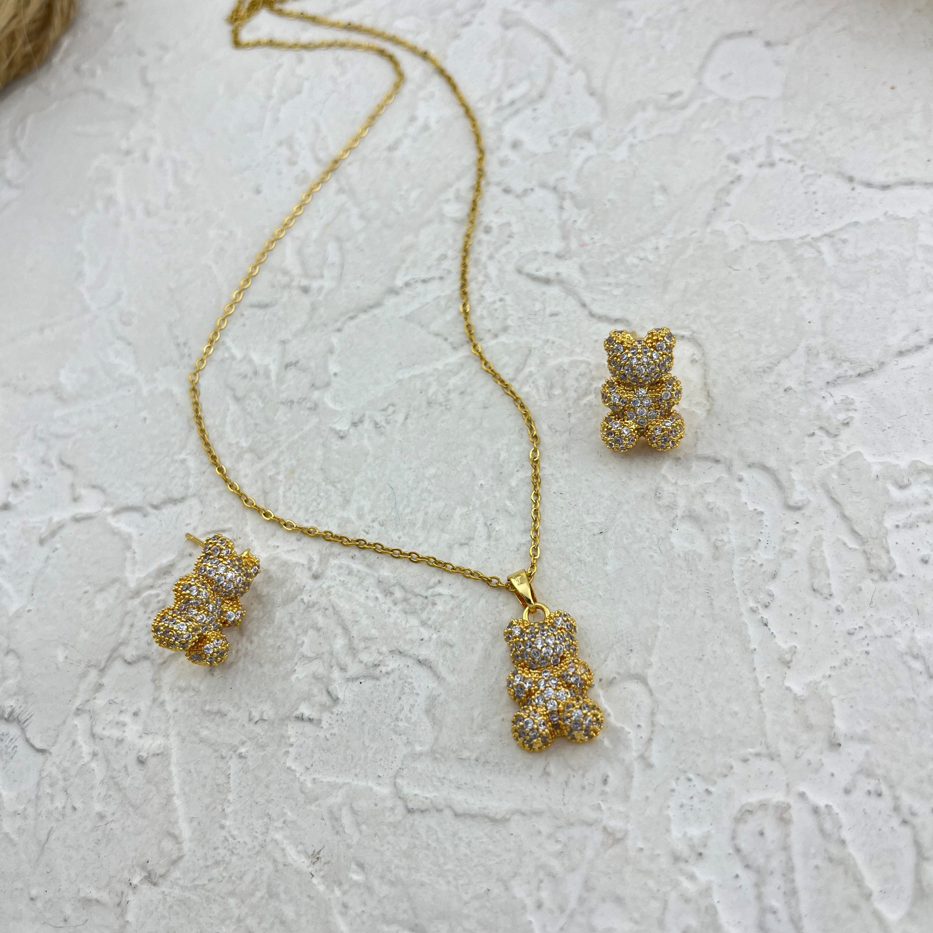 45 سانتیمتر زنجیر و پلاک 22 در 11 میلیمتر و گوشواره 22 در 11 میلیمتر