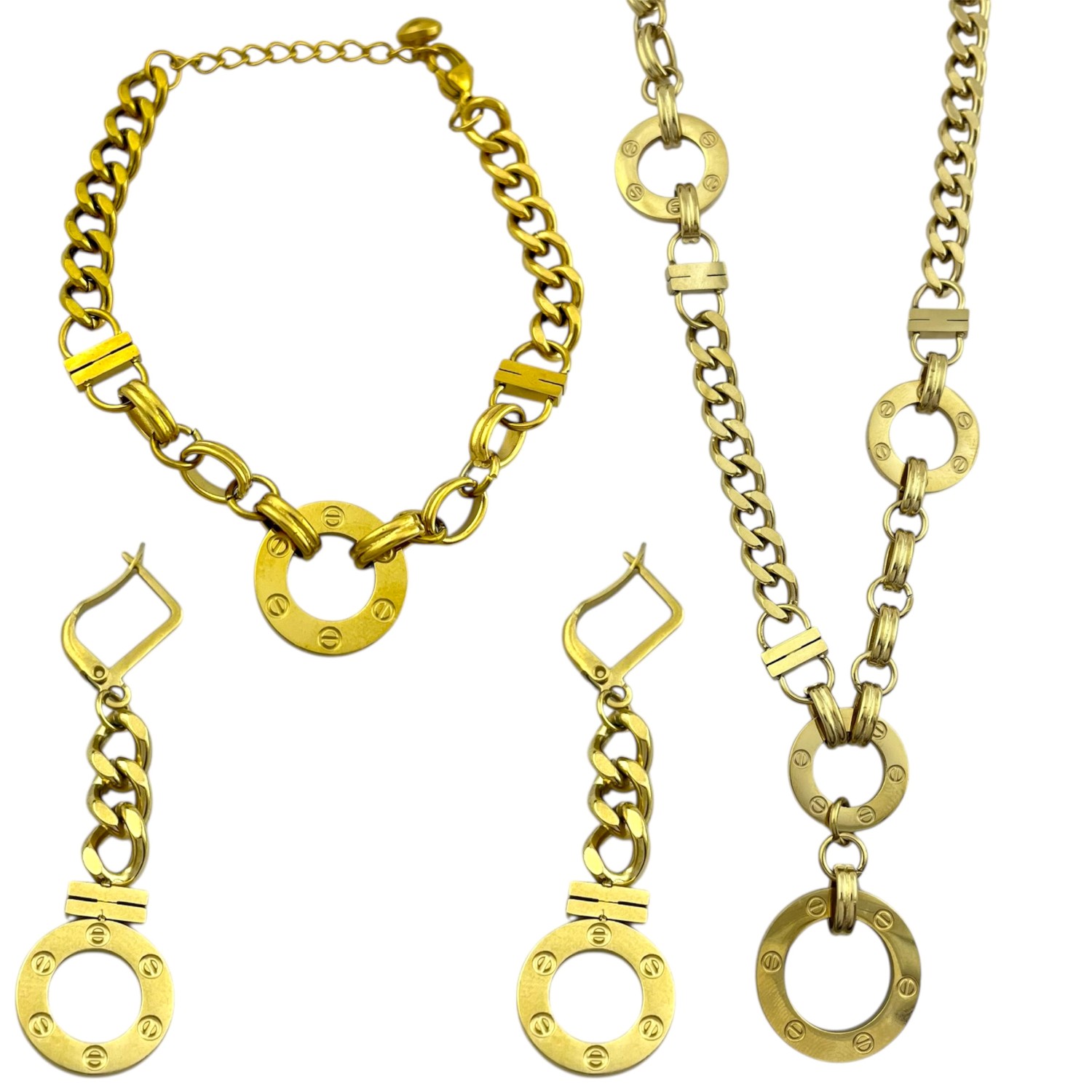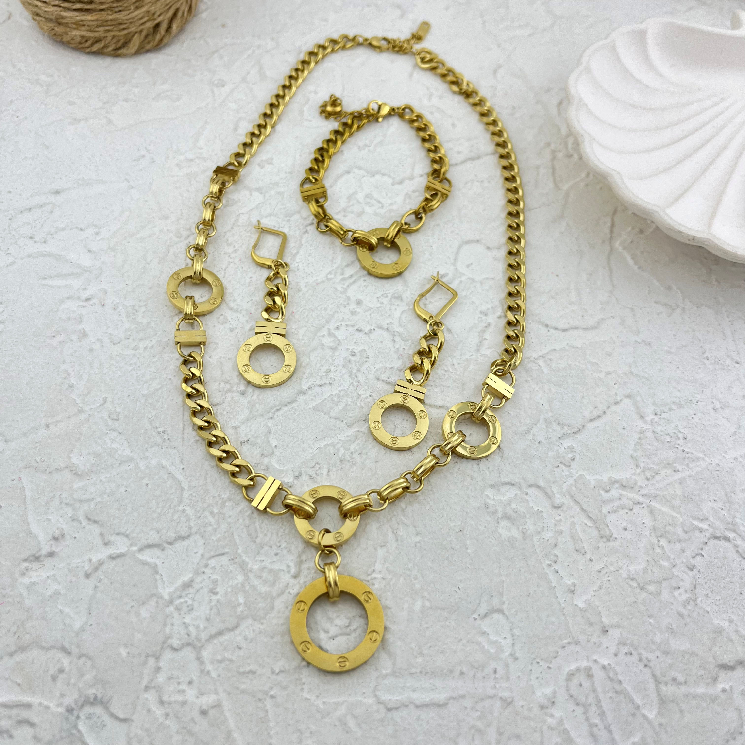 40 سانتیمتر زنجیر در 6 میلیمتر و پلاک 43 سانتیمتر در 20 میلیمتر و گوشواره 53 در 15 میلیمتر دستبند 16 در 6 میلیمتر / رنگ ثابت و ضد حساسیت