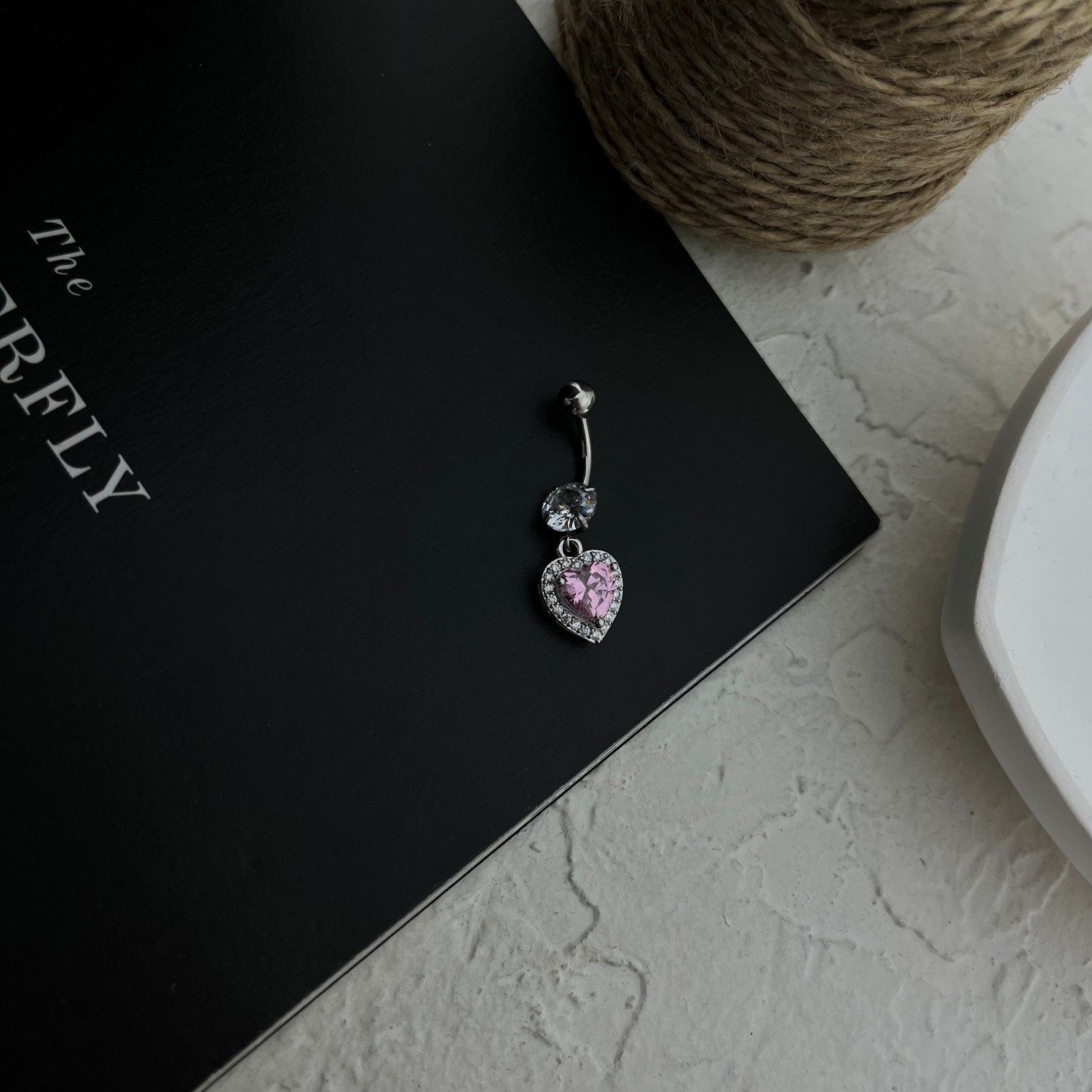 پیرسینگ ناف استیل زنانه مدل قلب جواهری کد P4820