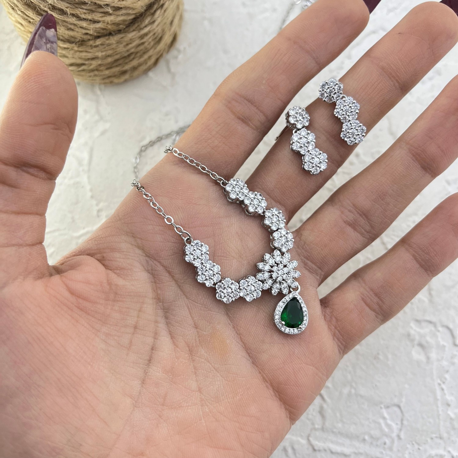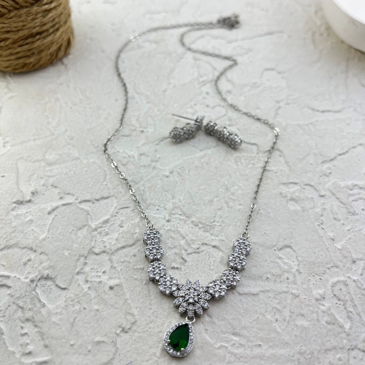 نیم ست زنانه جواهری مدل زمرد کد M4363