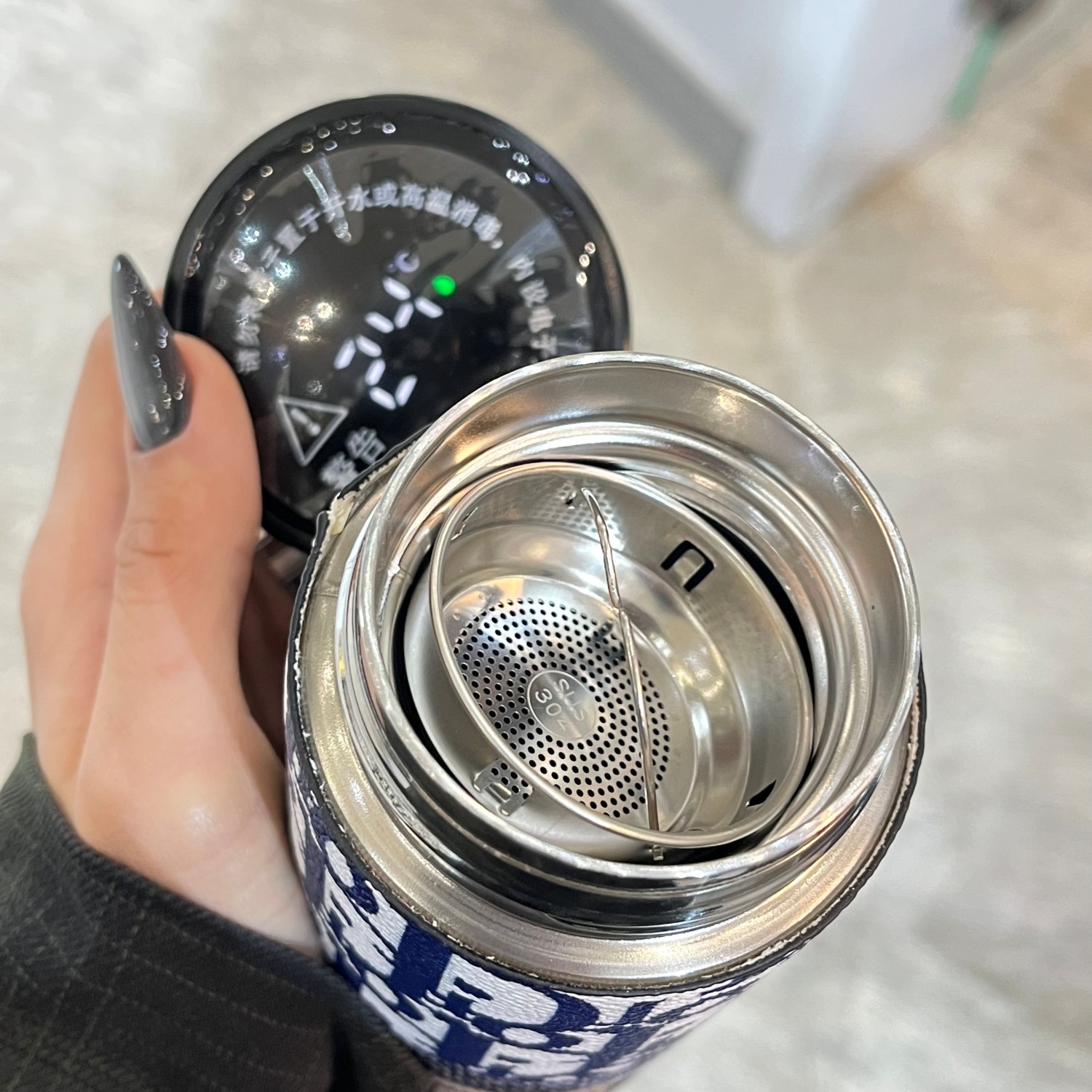 فلاسک هوشمند 0.5 لیتری مدل 058، جنس استیل، دارای درب پیچشی با صافی، عایق حرارت استیل، دارای صفحه نمایش دما