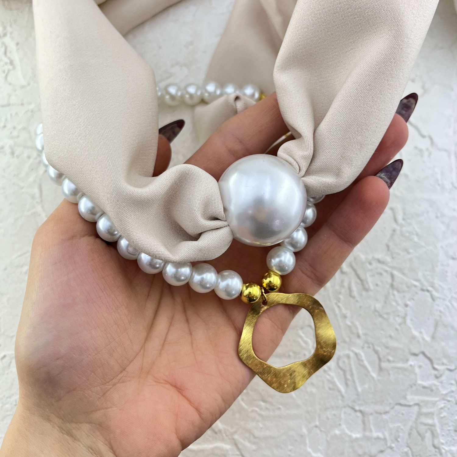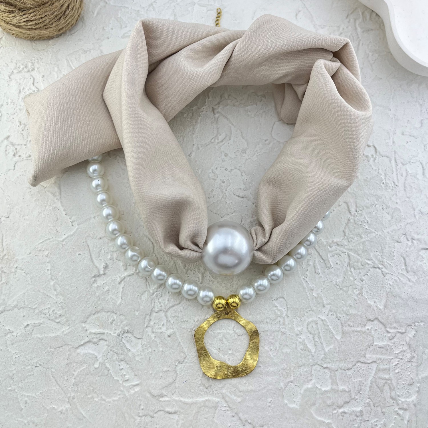گردنبند زنانه پارچه ای دو لاین مدل مروارید کد N5172