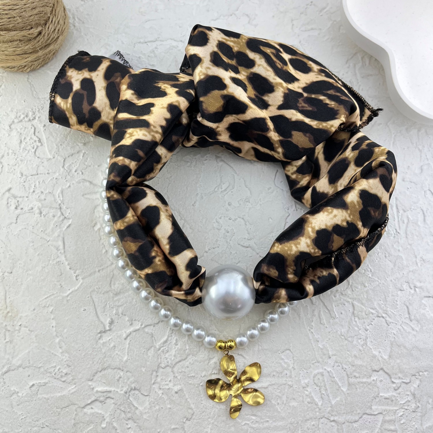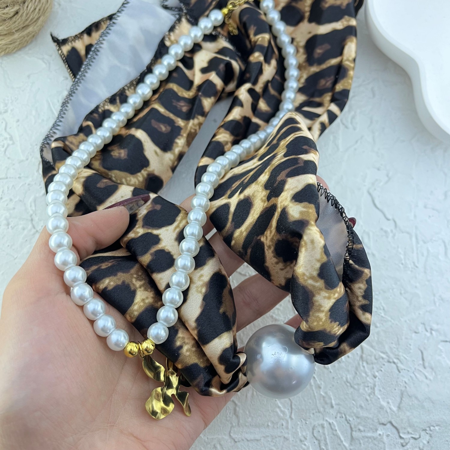 گردنبند زنانه پارچه ای دو لاین مدل مروارید کد N5170
