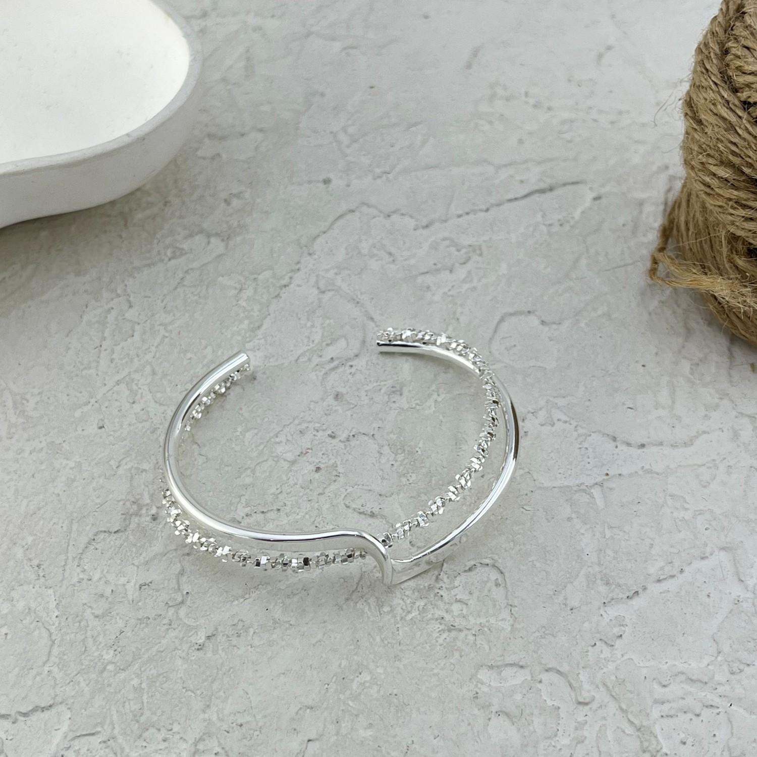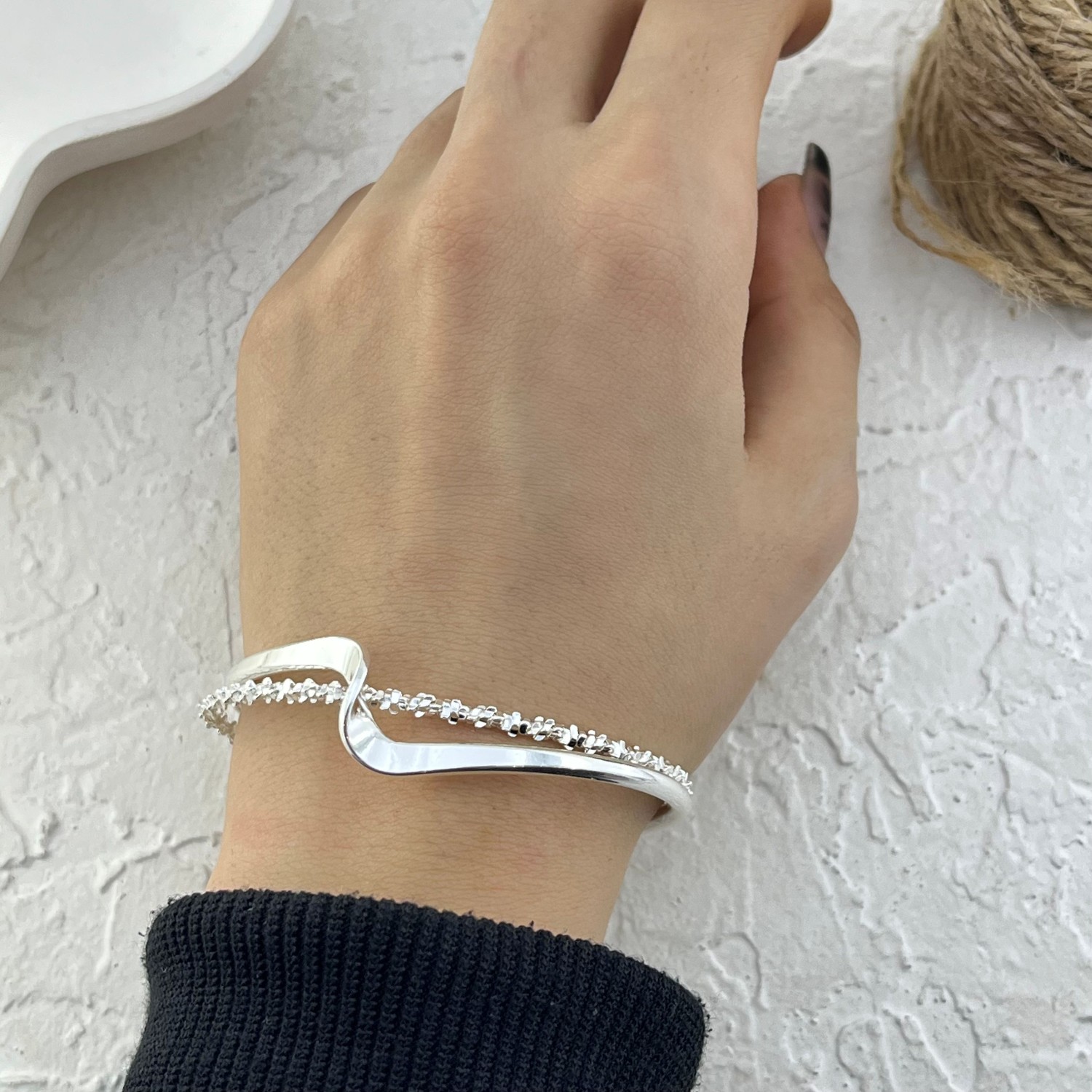 دستبند زنانه بنگل مدل موج و خاویاری کد B5449
